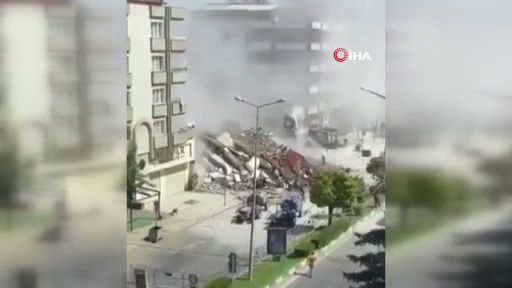 Görüntülerde, binanın çökmesinin hemen ardından yaşanan toz ve panik yaşanıyor.